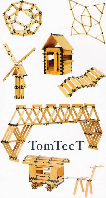 Stavebnice TomTecT je tvořena tenkými dřívky, které je možno spojovat k sobě pomocí plastových spojek.